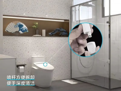 賽天思G智能座便器同樣采用了獨立雙噴桿設計,噴桿包括座便器整體大部分還使用了SIAA銀離子抗菌材質,抗菌率高達99.99%,不僅可以細致照顧到每個家庭成員之間的健康使用,提供持久的舒心守護,還能延展家庭型女性對于未來溫馨生活更美好的期待。
