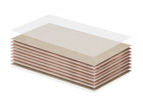 飾能板飾面系列最大的亮點之一就是“夠穩”。飾能板飾面系列基材內部為旋切單板縱橫交錯穩定十字結構壓制而成,多層芯材結構,穩定性提升不止一點!