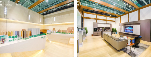 千年舟展出的家具樂凈生態(tài)板、鋅效抗菌系列、新型難燃OSB板、LSB高能家居板、準(zhǔn)分子超膚板等板材、以及各類全新花色憑借高顏值、高環(huán)保、高性能的優(yōu)勢成為了展會上引人矚目的焦點(diǎn)。