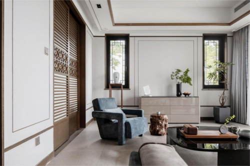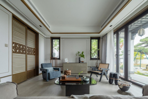 該別墅坐落于青島藏馬山旅游度假區(qū)內(nèi),是一座中式院落的別墅群,對于屬馬的男屋主來說,他鐘情于中國園林,于是把此套別墅作為解壓放松的度假休閑之地,請來設(shè)計師韓木為其設(shè)計,整個別墅設(shè)計之后變?yōu)榱艘蛔半[居”之地,正所謂“東方雅趣,詩意之魂”。