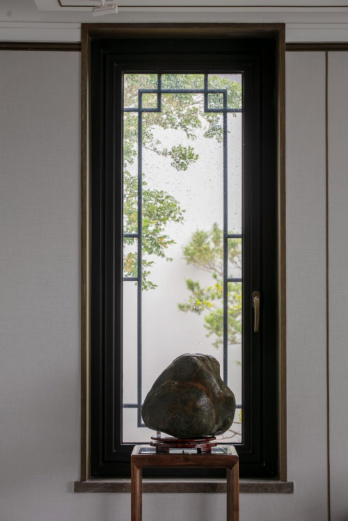 落地玻璃窗和中式花式窗欞組合,既連接室外自然風(fēng)景,又將東方設(shè)計與現(xiàn)代時光串聯(lián)起來,好像是一首敘事的抒情詩,花景、陽臺、石子......在沉靜與雅致的意境里,讓生活衍生出不同的體驗,每一種皆是幸福。