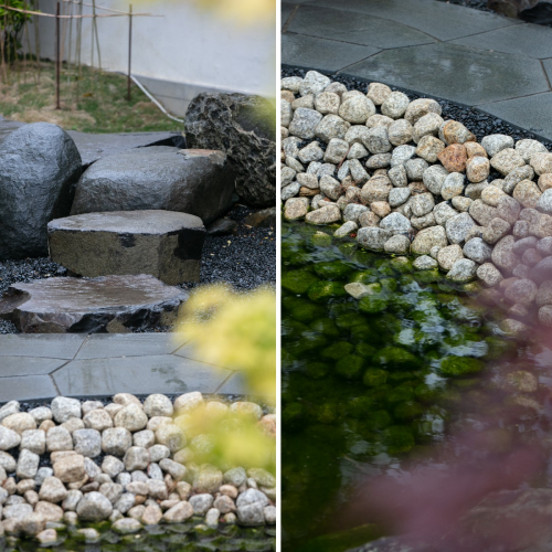 與院子的巖石相映成趣,開闊通透的空間,在開放式布局中將客餐廳結(jié)合起來,不論是閑坐、用餐皆是一種放松;在這個以簡約為主的空間里,沙發(fā)、茶幾、單椅等,皆與庭院形成一種互動,抬眼是如花,居家則是靜謐。