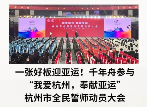 2023年2月21日,千年舟正式官宣成為杭州第十九屆亞運(yùn)會(huì)官方板材供應(yīng)商。