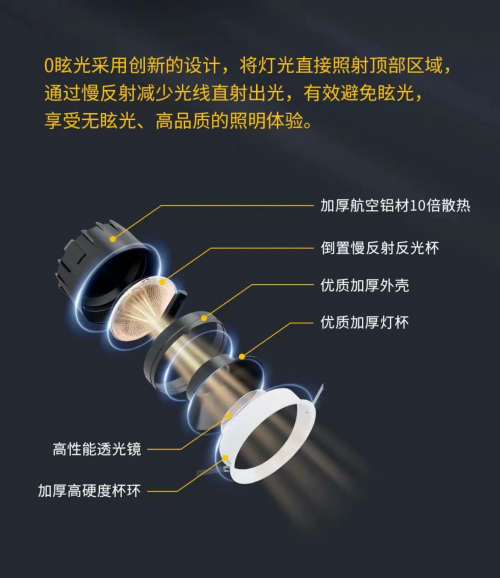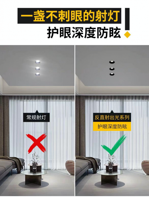 考察現有市場的燈具,寶寶們總是在糾結:用射燈還是筒燈?為什么總感覺眩光讓人刺眼?實際上,常規的射燈和筒燈主要依賴深杯和光束角來實現防眩效果,但這種直射的光線方式仍然難以滿足許多消費者對于防眩的需求。