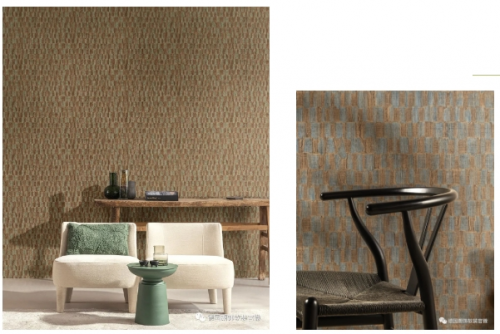 這組設計結合了各種外觀和紋理,創造了一曲視覺交響樂。凸起的亞麻質地結合迷人的金屬效果,通過若干小矩形有機融合在一起,在多重色彩層次感的背景上閃閃發光。