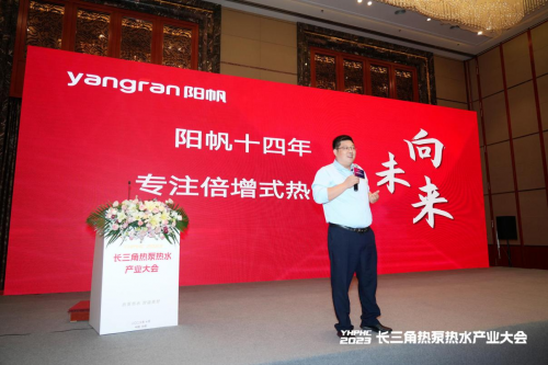 不僅如此,為了讓與會嘉賓對熱泵發展有更深入認知,以及陽帆在熱泵發展中對行業做出的貢獻,浙江陽帆節能開發有限公司副總經理王凱峰還在會議現場向與會嘉賓做主題發言,全面闡述陽帆在熱泵熱水領域所做出的努力,展示陽帆全系列的產品矩陣,以及陽帆在熱泵熱水領域所取得的成績。