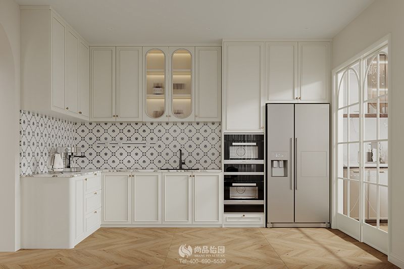 前言:本案例位于劍橋郡一期,是一棟有著440平方米的大戶型別墅。設計師在與業主的溝通中了解到,該別墅是由是業主夫妻二人和小朋友居住,未來也會住家保姆,且雙方父母偶爾過來。喜歡法式,輕奢,奶油感覺。同時了解到女業主喜歡奶油白色,綠色,金色等耐看色,不喜歡飽和度太高的顏色。因此設計師選用了輕奢法式奶油風裝飾空間,借用輕柔的色彩與簡約的設計打造溫馨而又高級的家居環境。
