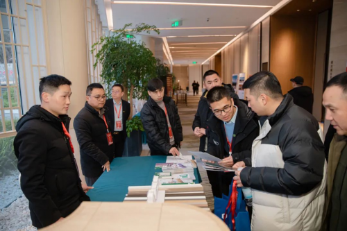 在田總的帶領下,千年舟品牌在大會舞臺上大放異彩,而在會場外之外,千年舟品牌同樣展現出勢不可擋的魅力。會場外千年舟展位前,千年舟工作人員用飽滿的熱情為與會嘉賓介紹關于千年舟企業發展、品牌實力和2024新品,作為第十九屆亞運板材供應商,千年舟用榮耀樣板之力詮釋了全方位、多層次的亞運品牌實力。