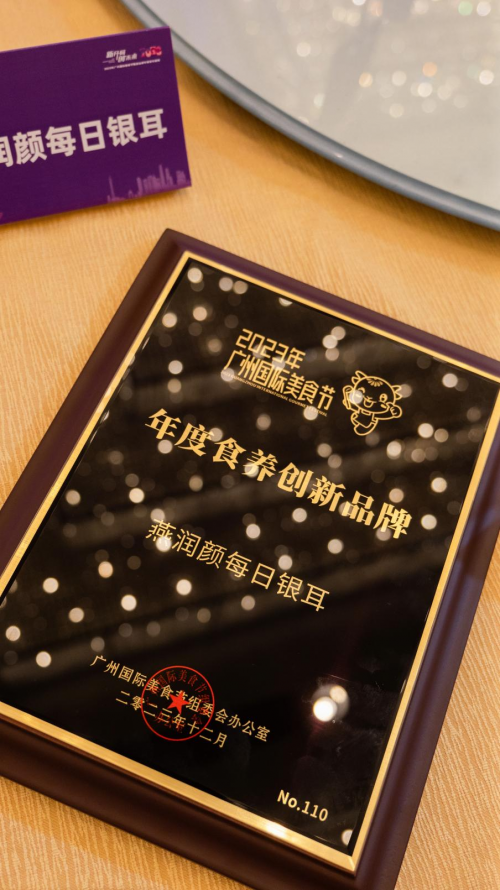 2024年1月3日,以“新開局 創未來”為主題的2023年廣州國際美食節甄選品牌年度發布盛典暨2024餐飲文旅產業交流饗宴隆重舉行。燕潤顏每日銀耳榮獲2023年廣州國際美食節年度食養創新品牌。