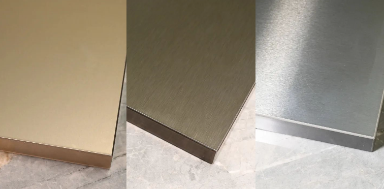 千年舟流金板是2023年千年舟家具廠渠道首次推出的金屬材質的高端飾面板。它是在基材上壓貼金屬鋁箔裝飾而成,成板美觀大方、線條挺拔堅固,其獨有的質感和金屬光澤,能夠有效提升空間現代感和科技感,彰顯家具產品的高級感,是一種非常具有質感的高端裝飾板材。