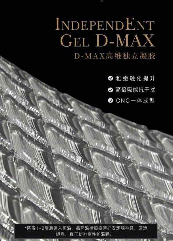 頂層的D-MAX高維獨立酥軟凝膠,不僅讓感官豐盈飽滿,更是奢華睡眠的專屬。凝膠科技材質(zhì)清涼恒溫助眠,不僅承托更加自然,舒適感也再次加倍。。