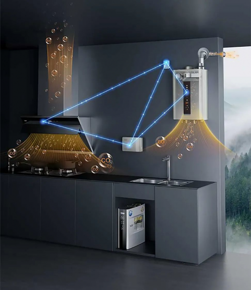 不僅如此,A.O.史密斯還于日前將「瀞」油煙機(jī)接入了其自主研發(fā)“以人為中心”的全聯(lián)全控智能物聯(lián)系統(tǒng)——AI-LiNK。該系統(tǒng)讓用戶家中原本孤島式的智能家電產(chǎn)品真正“鏈接”了起來。通過AI-LiNK,油煙機(jī)、燃?xì)鉄崴鳌㈦p氣體報(bào)警器可以實(shí)現(xiàn)智能聯(lián)動(dòng),實(shí)時(shí)地監(jiān)測(cè)廚房?jī)?nèi)的有害氣體。一旦監(jiān)測(cè)到廚房?jī)?nèi)一氧化碳、甲烷等濃度超標(biāo)時(shí),系統(tǒng)可以迅速啟動(dòng)聲光報(bào)警,并快速將有害氣體排出室外,有效地避免了室內(nèi)空氣的污染,全天候地智能守護(hù)家人的安全。
