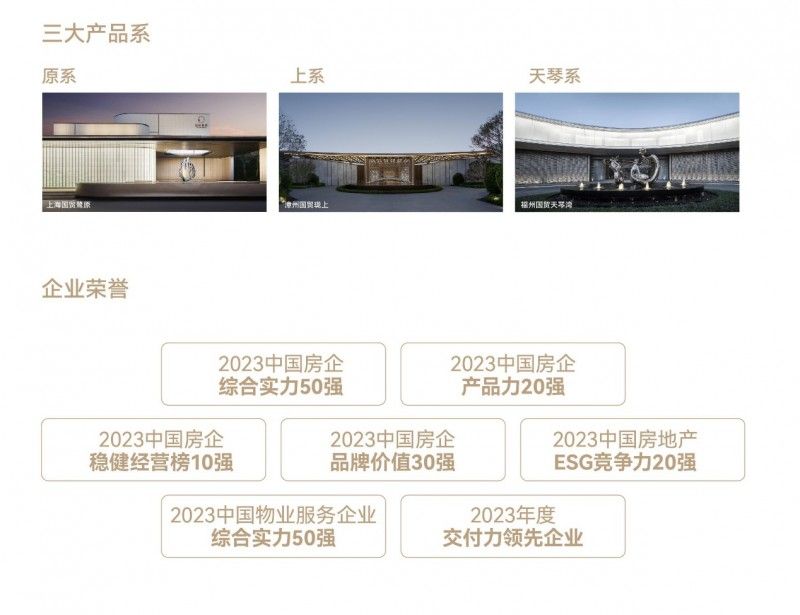 2023年,國(guó)貿(mào)地產(chǎn)挺進(jìn)中國(guó)房地產(chǎn)開發(fā)企業(yè)綜合實(shí)力50強(qiáng),榮獲“2023房地產(chǎn)企業(yè)品牌價(jià)值30強(qiáng)”,排名第27位,品牌價(jià)值150億元,榮登中國(guó)房地產(chǎn)ESG競(jìng)爭(zhēng)力TOP20等榜單。