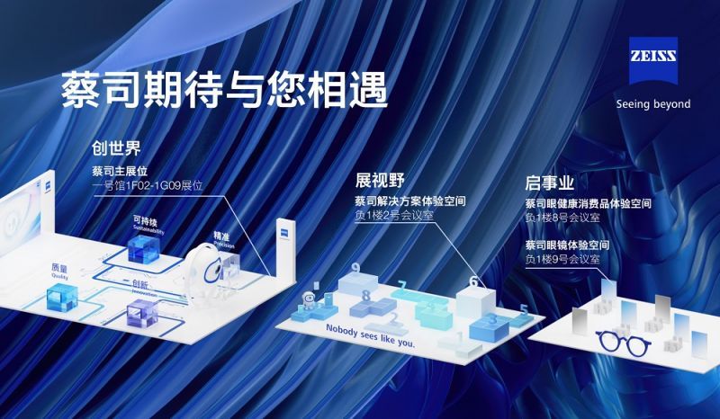 作為本次展會活動的重頭戲,蔡司光學還將發布品牌新概念,全面升級品牌感知,為消費者、合作伙伴和行業發展帶來視光新藍圖。