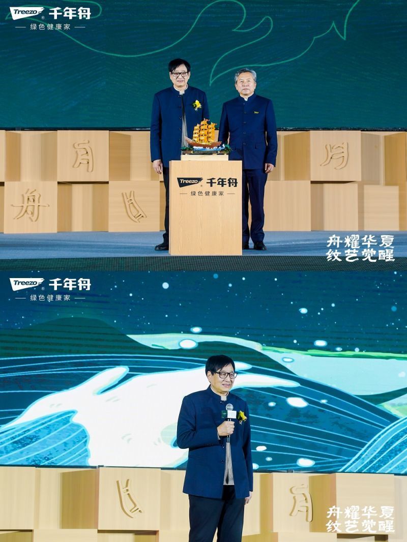 千年舟紀錄片舟渚問道,再現了千年舟對傳統文化的深度挖掘與傳承,全場嘉賓共同見證文化傳承的時代接力。以古鑒今,重塑內核。從一張好板到一室幾柜,從一方居所到一處建筑,千年舟不斷傳承傳統文化之薪火,將文化融于產品,以文化鏈接萬物。