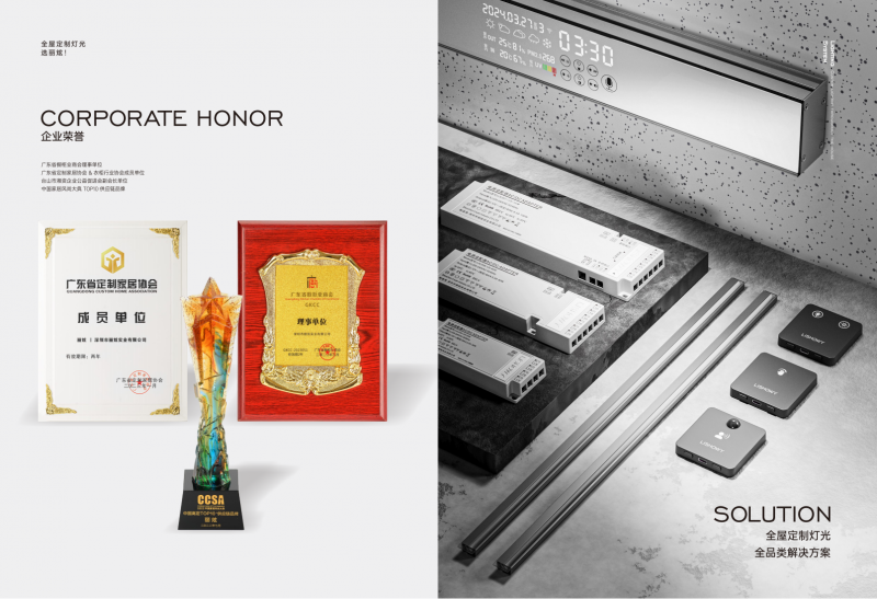 歷經17年的研發和創新,麗炫在深圳和江門設有兩大研發中心,并不斷在關鍵技術、基礎能力、架構、標準和產品開發等方面進行長期投入,持續推出符合市場需求的高品質新品。截至目前,麗炫已擁有60多項專利,并建立了高品質全品類的全屋定制燈光產品體系,為用戶提供更穩定、更智能、更高性能、更安全可靠的全屋空間照明體驗。