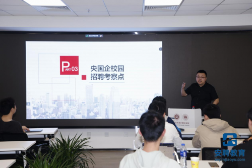 最后,在互動環節,同學們熱情參與,提出了一些在央國企求職中可能遇到的問題,如校招和社招的區別,央國企的待遇等問題,并得到了張凱元老師的耐心解答。這場講座贏得了同學們的一致好評。同學們紛紛表示,通過張凱元老師的分享,他們對央國企的招聘流程,面試內容有了更深入的了解,同時也學到了寶貴的求職技巧和經驗。他們十分感謝安聘教育提供了這樣一次有益的求職指導。
