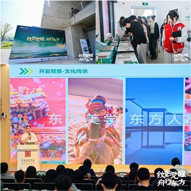 千年舟集團(tuán)副總裁田茂華女士在致辭中表示,本次大賽高校宣講選擇在中國美術(shù)學(xué)院·良渚校區(qū)啟航,既是由于千年舟與國美同根同源,也是對國美這個“中國現(xiàn)代藝術(shù)教育搖籃”的致敬,亦是希望國美之深厚藝術(shù)底蘊(yùn)、銳意設(shè)計(jì)風(fēng)尚,為本次大賽書寫下絢麗華章。本次大賽以“紋藝覺醒·舟行東方”為主題,旨在深入挖掘東方國色、文化要素,通過大賽這一紐帶,以賽促研、賡續(xù)薪火,做中華傳統(tǒng)文化之傳承者、踐行者,將中國傳統(tǒng)文化價值及綠色發(fā)展理念傳遞給更多的年輕人。