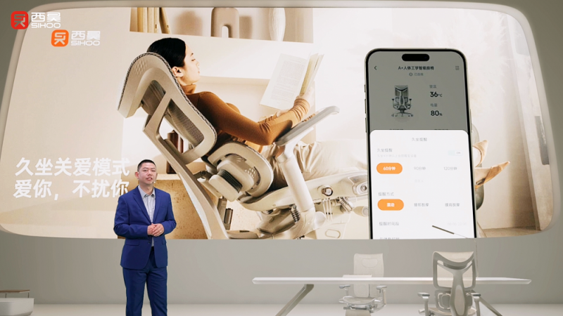 據西昊智能家具董事長羅慧平在發布會上介紹,T6智能人體工學椅在腰部、肩部內置兩種大師手法按摩儀,根據不同部位的壓力狀況可提供7種模式進行按摩解壓,與座椅一體式設計,無線連接,占地比傳統按摩椅小60%。傳統按摩椅體積龐大難以適應辦公、學習等使用場景,而辦公座椅無法提供放松舒壓功能,T6的結合發揮出1+1>2的效果,無論在辦公、學習或休息間隙中都可以隨時隨地滿足用戶對于驅除身體疲勞的需求。