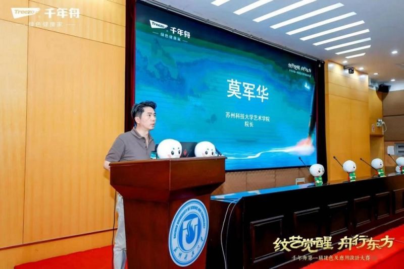 千年舟集團代表在發(fā)言中指出,蘇州科技大學(xué)藝術(shù)學(xué)院為設(shè)計精英的搖籃,擁有獨特教育理念和卓越成就。她表示,千年舟集團始終堅守綠色發(fā)展的理念,致力于將深厚的華夏文化融入產(chǎn)品的每一個細節(jié)之中,讓東方美學(xué)的韻味在板材上得以完美呈現(xiàn)。千年舟舉辦“花色及應(yīng)用設(shè)計大賽”,正式期望以產(chǎn)學(xué)研合作的方式,與蘇州科技大學(xué)等優(yōu)秀高校攜手,共同傳承與踐行中華傳統(tǒng)文化的精髓,以現(xiàn)代審美喚醒古老的文化基因,讓東方美學(xué)的獨特魅力真正融入人們的日常生活,共同創(chuàng)造更加美好的未來。