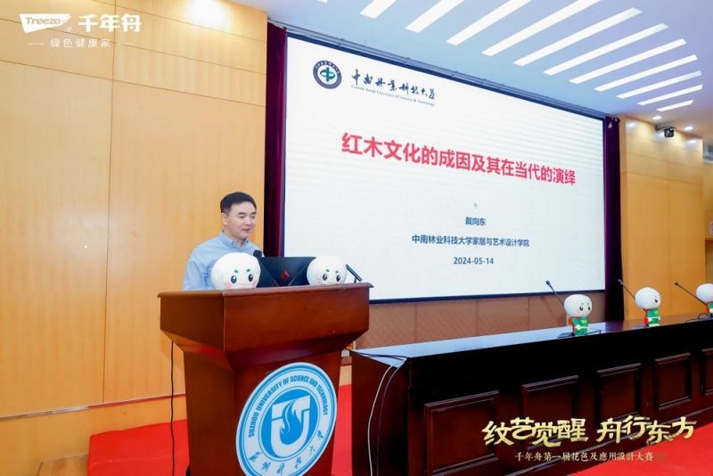 在隨后的環(huán)節(jié)中,中南林業(yè)科技大學(xué)家居與藝術(shù)設(shè)計學(xué)院院長戴向東進行了《紅木文化的成因及其在當(dāng)代的演繹》主題講座,深入剖析了紅木文化的歷史淵源與當(dāng)代價值,為現(xiàn)場學(xué)子們提供了寶貴的學(xué)術(shù)指導(dǎo)。