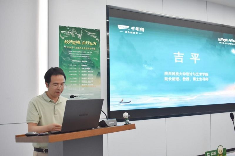 陜西科技大學設計與藝術學院院長助理吉平教授上臺致辭,他表示,陜西科技大學設計與藝術學院自成立以來,始終致力于培養具有創新精神和實踐能力的設計人才,為行業輸送了大量優秀人才。談及千年舟設計大賽,他認為這不僅是對中華傳統“紋藝”文化的致敬,更是對其深刻價值的挖掘與傳承。通過“覺醒”的呼喚,激發對復雜問題和社會現象的思考,尋求藝術創新與社會變革的契機。而“舟行東方”則象征著東方文化的探索之旅,旨在展現其獨特的美學、哲學和價值觀。最后他強調,學院將繼續加強與企業的合作,推動產學研深度融合,為學子們提供更多的實踐機會和更廣闊的發展空間。
