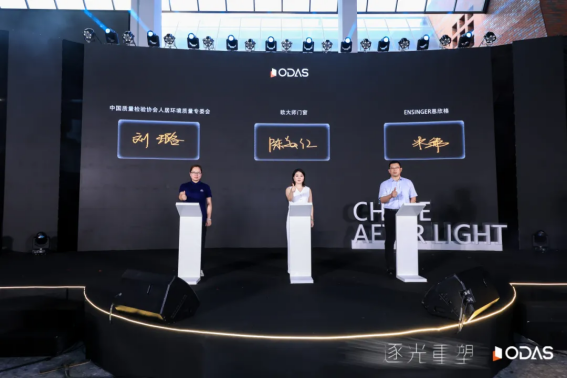 歐大師門窗董事長陳美紅、中國質檢協會人居環境質量專委會秘書長劉璐、德國恩欣格國際貿易有限公司全權代表朱偉上臺簽約!共同開啟共生共贏的新起點,為建設健康人居環境貢獻力量!