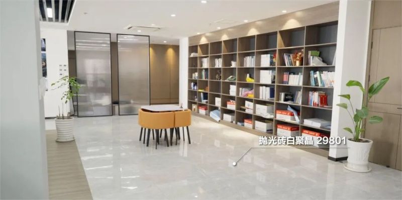 企業辦公空間采用了冠珠瓷磚簡潔明亮的拋光磚、拋釉磚,以白色為主,點綴灰色,營造簡潔大氣的商務氛圍。從過道,到樓梯,再延伸到大廳、辦公室,各場景氣韻流通、統一協調,展示出企業的創新底色和城內產業的蓬勃向上的特質。