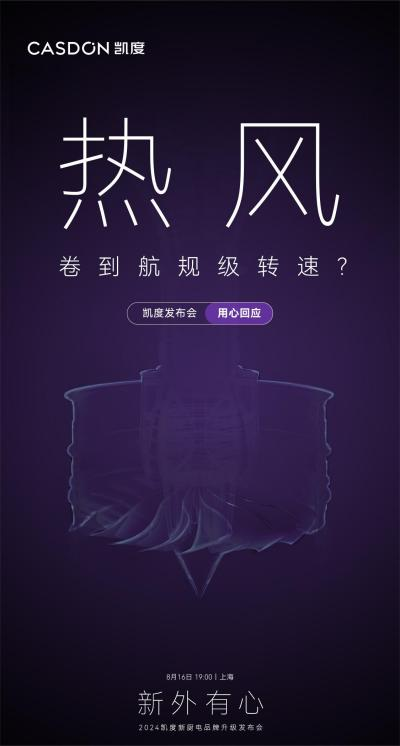凱度堅持以科技創新推動行業進步,以用心哲學服務萬千用戶,致力于為中國億萬家庭打造更高品質的美好廚居生活。“新外有心”·2024凱度新廚電品牌升級發布會將揭曉怎樣的廚電新物種,活動又將有哪些行業大咖、專家及重磅嘉賓現身?敬請期待!