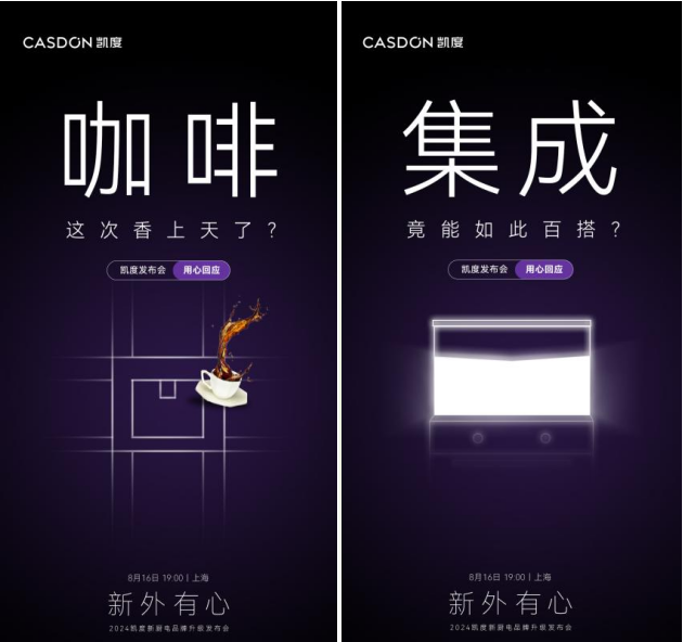 近日,新廚電代表品牌——凱度電器在官方自媒體發布了品牌升級發布會預熱海報,不僅透露五大新品的概念亮點,也官宣將于8月16日在上海舉辦“新外有心”·2024凱度新廚電品牌升級發布會,強勢吸引用戶關注,制造了一波充滿懸念的行業話題。