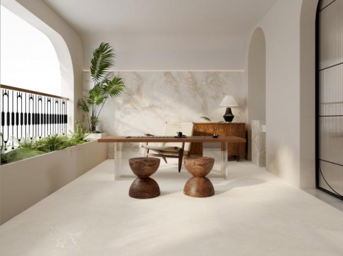 很多城中舊房由于建成年代久遠,當初在設計空間布局時比較簡單,但隨著生活方式和居住觀念的變化,這些舊房的室內格局普遍不能滿足當下年輕人的居住要求。箭牌瓷磚微光花園系列以自然紋理主磚+藝術花磚進行組合,通過兩者巧妙地搭配,不僅能讓客廳、臥室、餐廚等空間的劃分更鮮明且富有層次感,而且主磚大理石、水磨石、潮流水泥的自然紋理,與葉影、枝葉、繁花的花磚能為單調的空間,帶來輕松自在、明朗舒適的度假氛圍。