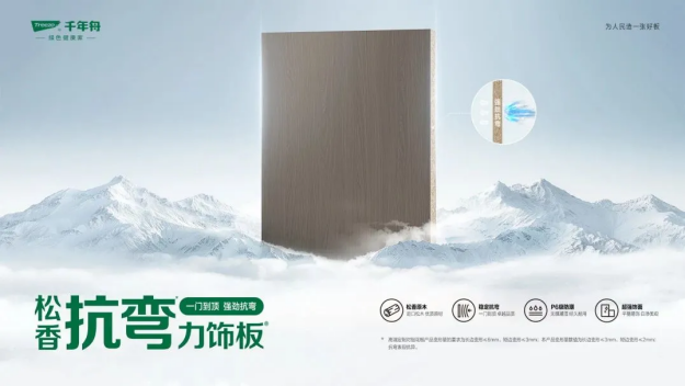 除此之外,千年舟松香抗彎力飾板也在此次展會引起了廣泛關注。它采用先進工藝和優質松木,確保板材在應用中不變形不開裂。24小時吸水厚度膨脹率≤8%,在潮濕環境中,依然能夠保持穩定性能,避免膨脹變形。三層結構鋪裝與熱壓工藝,讓板材結構更密實,握釘力更強,持久不變形,適合做高柜門板。