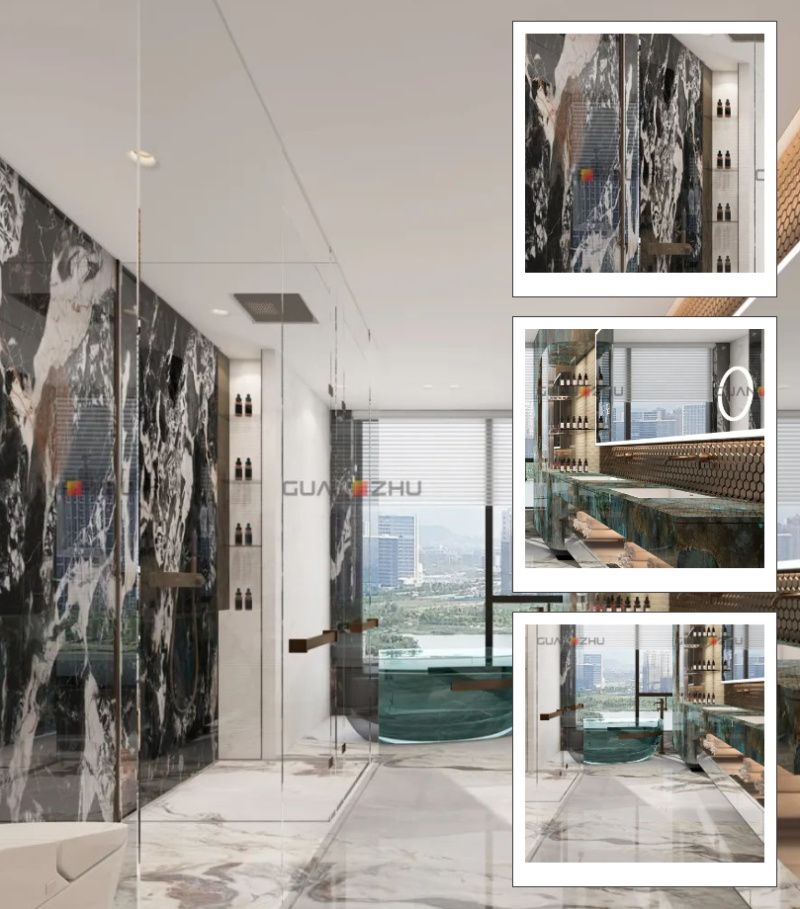 比如在「質(zhì)感雅苑」空間套餐中,他就特意選擇在主衛(wèi)空間地面通鋪冠珠韶華-日上東方巖板,明亮的色彩,還有富有深意的產(chǎn)品寓意,象征著光明與希望,也在無形中賦予居住者積極向上的生活態(tài)度。