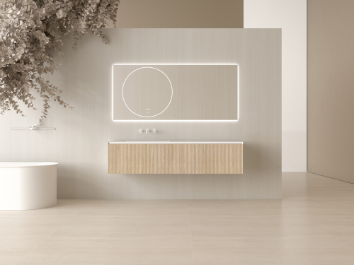如果你追求溫馨舒適的生活格調,伊芙琳浴室柜是個不錯的選擇。其采用輕法式風格設計,溫潤百搭的色調,能輕松融入各種家居環境。雙智能圓鏡設計,正面配備美妝照明,還有高效除霧功能,讓每一次自我審視都清晰明了。而鏡背的氛圍燈光,則為浴室空間增添了一抹浪漫與溫馨。