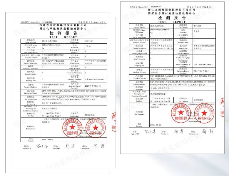 千年舟科技木水漆護墻板和混油水漆護墻板一個最重要的產品特點就是使用了環保水性漆工藝,用此工藝制作的護墻板產品通過了檢測機構的認證檢測,各種理化性能達標,送檢的護墻樣品,甲醛釋放等級達到了ENF等級。
