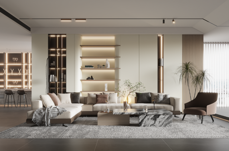 通過一體化設計,可以充分利用墻面空間,實現隱形門、收納存儲、分割空間等功能,提高空間的利用率。這對于戶型優化來說尤為重要,能夠有效解決視覺統一性和收納空間不足的問題。