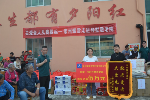 10月18日,雨后天晴,丹陽市導墅鎮敬老院院內,一場令人倍感溫暖的愛心捐贈活動如火如荼進行著,來自常州市天寧區的常州耀雷生物科技有限公司董事長羅開英帶領愛心團隊一行40余人,向丹陽市導墅鎮敬老院捐贈了價值五萬元的愛心物資。