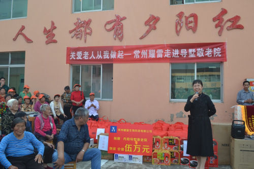 “世界上最大的,不是高山,不是大海,是胸懷;世界上最有價值的,不是珠寶,不是錢財,是愛心……”捐贈現場,作為捐贈方,常州耀雷生物科技有限公司董事長羅開英在發言中表示,一份愛心是一種慈愛善舉,一筆捐贈是一種社會責任,她說,“當天捐贈的愛心物資和愛心資金,來自該公司愛心團隊的捐贈,敬老院是一個充滿愛和希望的地方,我希望通過發起這次愛心捐贈活動,能增強員工的善心、愛心和責任心,也能感召更多愛心人士的參與,傳承和發揚中華民族的優良傳統。”