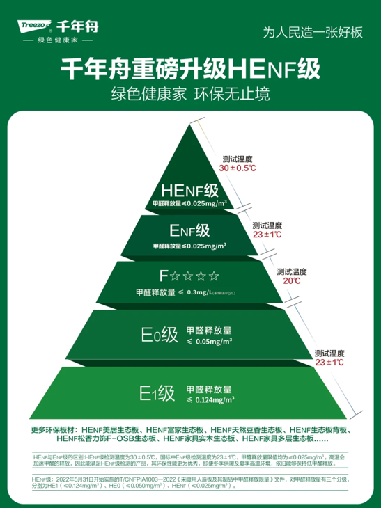 早在2021年10月,由千年舟參與制定的國家人造板環(huán)保等級標(biāo)準(zhǔn)——ENF級新國標(biāo)GB/T 39600-2021《人造板及其制品甲醛釋放量分級》正式發(fā)布,標(biāo)志著ENF級成為中國環(huán)保至優(yōu)新標(biāo)準(zhǔn),也是目前板材領(lǐng)域廣泛被應(yīng)用的環(huán)保標(biāo)準(zhǔn)。自此,千年舟實現(xiàn)全渠道ENF級升級覆蓋,以率先垂范的擔(dān)當(dāng)精神,領(lǐng)跑行業(yè)ENF級品質(zhì)。