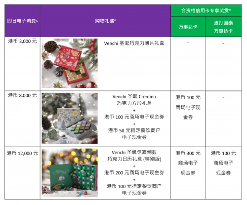 甜蜜圣誕三重賞 消費換領(lǐng)Venchi巧克力禮盒及高達(dá)港幣950元電子現(xiàn)金券