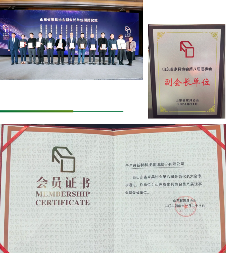 會上,憑借為行業發展做出的積極貢獻,千年舟集團獲頒山東省家具協會副會長單位證書。
