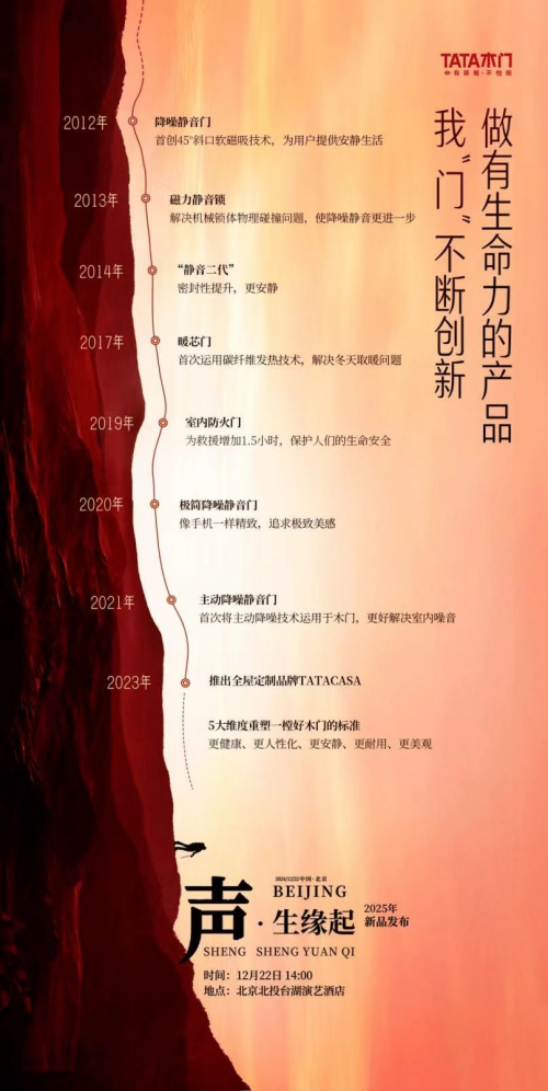 每年12月22日的新品發(fā)布會上,TATA木門都會向業(yè)內(nèi)外、消費(fèi)者呈現(xiàn)他們對聲音、對降噪研究的最新成果。