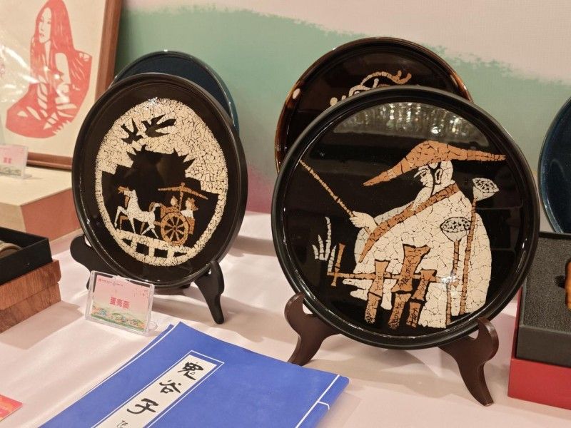 淇縣蛋殼畫展位前,數十幅蛋殼鑲嵌作品在燈光下熠熠生輝。”蛋殼畫需要將蛋殼打磨成 0.1 毫米的薄片,再根據圖案進行拼貼。”工作人員現場展示的蛋殼畫,用青、白、褐三色蛋殼巧妙拼出一幅幅精致的畫作,讓北京市民劉先生感嘆:”這簡直比珠寶還精致!”