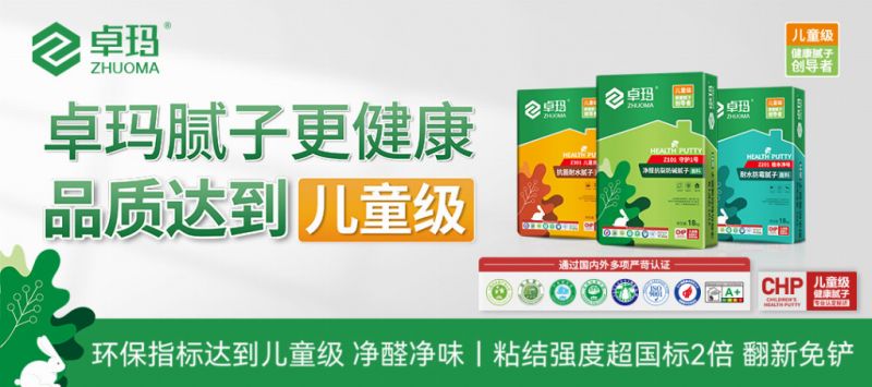 通過改進工藝、提升原材料品質、改進配方、嚴格控制生產過程等方式,使得卓瑪兒童級健康膩子相比普通膩子在環保性能、柔韌性、抗霉菌、耐堿性、粘結強度、施工性能、裝修效果等方面都有很大提升。