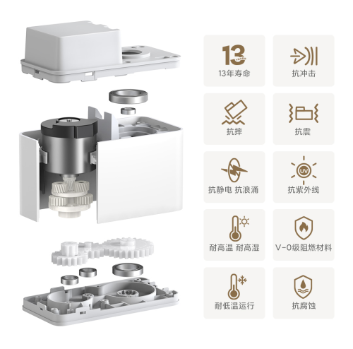 窗簾電機采用多重精密設計,運行噪音低于30分貝,即使夜間開合也不會干擾家人休息。小而強大即使是笨重的絨布窗簾也能絲滑平穩開合。此外,整機通過安全測試,可靠性測試多達23項,電機壽命長13年。