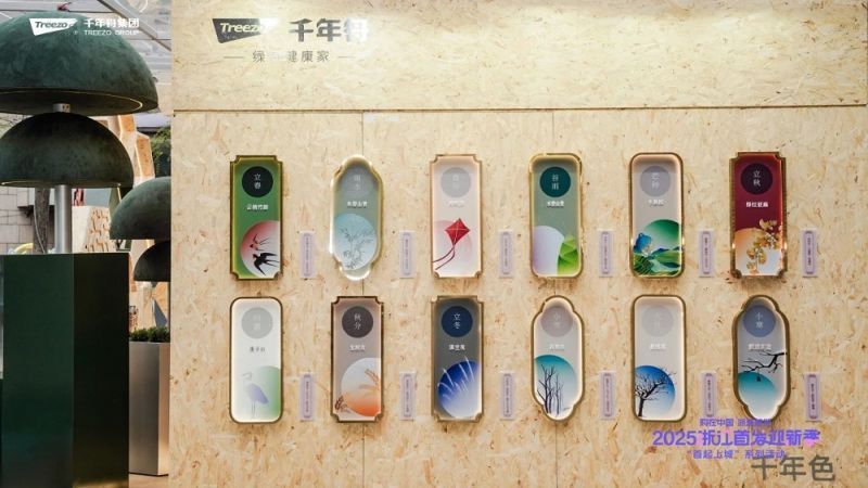 千年舟千年色系列則是對華夏千年色彩文化的深度挖掘與現(xiàn)代演繹。該系列以24節(jié)氣為依托,從24節(jié)氣中巧妙汲取色彩靈感與自然中萬物的變化,將傳統(tǒng)色彩融入板材設計,每一種顏色都承載著獨特的節(jié)氣內(nèi)涵,賦予家居空間別樣的文化韻味。同時,