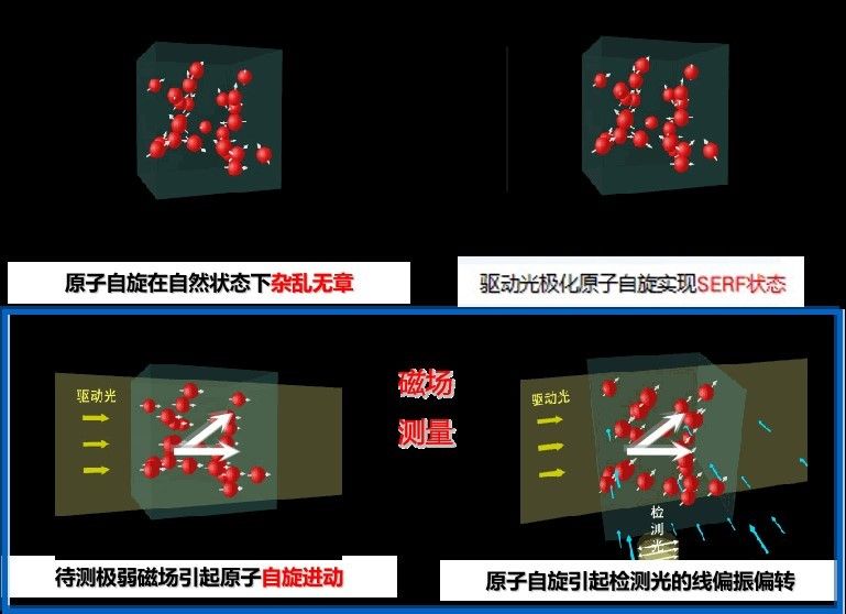 SERF原子磁強計?是國器傳感的核心技術(shù)產(chǎn)品,其工作原理是利用堿金屬原子(Rb)外層電子自旋性質(zhì),以泵浦激光,使堿金屬原子產(chǎn)生自旋極化,在外界弱磁場的作用下,堿金屬原子發(fā)生拉莫爾進動,改變對檢測激光的吸收,從而實現(xiàn)高靈敏度的磁場測量。