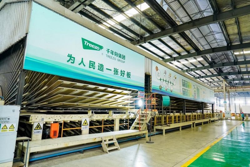 臨沂工廠則通過十一條自動壓貼生產線、一條PET生產線、兩條成品檢板線等高效配置,形成了完善的貼面板加工體系,承擔著從基板到成品的高效協同任務。媒體們對其高效產線的自動化程度、現場管理的標準化流程以及產品質量的一致性紛紛表示贊賞。