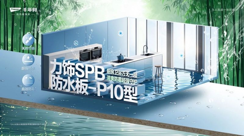 千年舟在板材防水之路上不斷深耕,力飾SPB防水板-P10型的推出,是品牌創新與實力的有力證明,它以卓越的能力、環保的品質和廣泛的適用性,為高濕環境下的家居與商業空間裝修帶來了全新可能。未來,千年舟將繼續秉持“為人民造一張好板”的初心,研發更多優質的產品,為消費者打造健康、舒適、美好家。