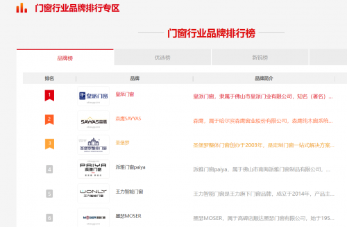 根據行業權威媒體及消費者調研,本年度十大門窗品牌依次為:
